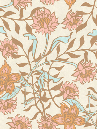 'Floral Bunch' is a tossed pattern in fun retro colours. It's layered and textured with movement that makes the eye wander. I was inspired to create this design after reading a book about the British textile designer William Morris (1834-1896), an influential figure in the Arts and Crafts movement of the late 19th century.